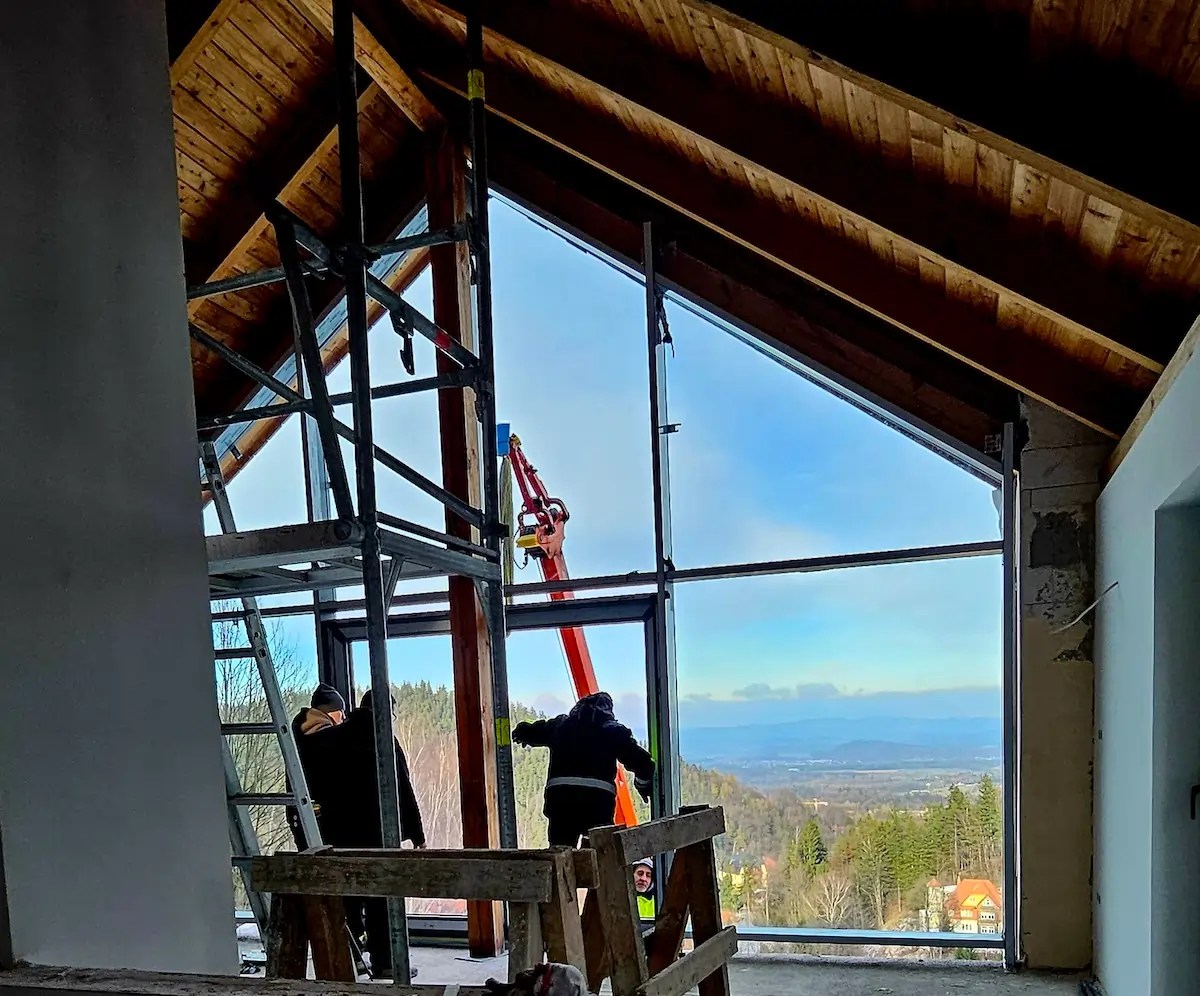 Montaż stolarki Aluprof przez firme Rybaczyk Okna na inwestycji Krokus w Karpaczu.